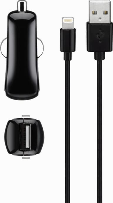 Goji USB-A billaddare med Lightning-kabel 1m (svart)