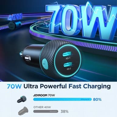 Joyroom Billaddare CCN02 70W Dual PD Car Charger with Light Button USB-C