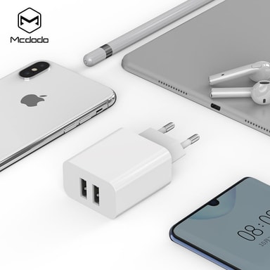 Mcdodo CH-6720 Väggladdare kit, Laddare med 2 x USB A portar och en Lightning kabel (Non MFI) för synkning och laddning 1m vitLäs mer om produkten