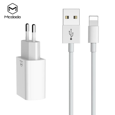 Mcdodo CH-6720 Väggladdare kit, Laddare med 2 x USB A portar och en Lightning kabel (Non MFI) för synkning och laddning 1m vit