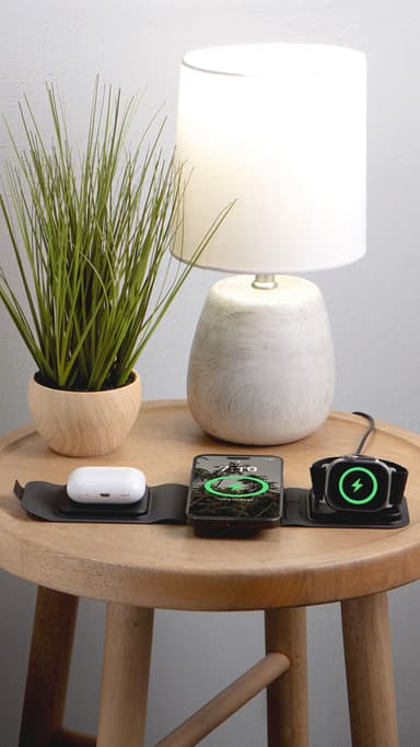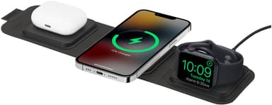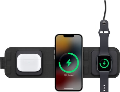 Mophie 3-i-1 MagSafe trådlös reseladdare ger dig en kompakt laddningslösning för iPhone, Apple Watch och AirPods. Laddaren är MagSafe-kompatibel och ger upp till 15W laddning för din iPhone. Kompakt design.Läs mer om produkten