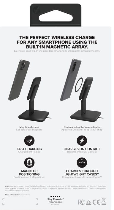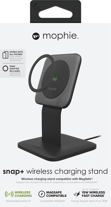 Mophie Snap+ trådlöst laddningsställ är en elegant lösning för trådlös laddning. Tack vare sin magnetuppsättning håller den din telefon ansluten i perfekt laddningsläge, både liggande och stående.Läs mer om produkten