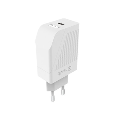 100% återvinningsbart miljövänligt 1 x USB-A och 1 x USB-C laddare från Muvit.Läs mer om produkten