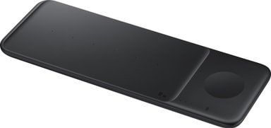 Samsungs trådlös laddare Trio är ett bekvämt tillbehör som laddar alla dina enheter samtidigt. Den snabba enheten har två trådlösa laddare för telefoner eller hörlurar och en dedikerad laddare för Galaxy Watch.Läs mer om produkten