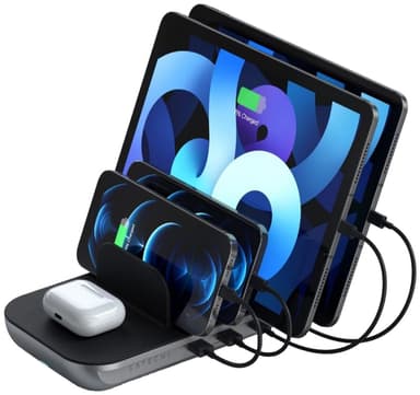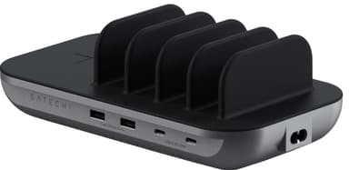 Satechi trådlös laddningsstation ger dig en bekväm laddningsplats för alla dina enheter. Två snabbladdningsaktiverade USB-C-portar och två USB-A-portar tillsammans med en Qi-kompatibel trådlös laddare rymmer det mesta.Läs mer om produkten