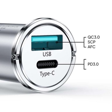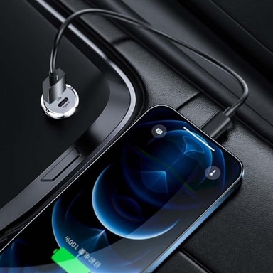 SiGN billaddare med USB-A och USB-C uttag som smidigt kopplas in i cigarettuttaget i bilen. Billaddaren har stöd för både Power Delivery och Quick Charge 3.0 snabbladdning. Tack vare dess två portar kan du praktiskt ladda två enheter under bilresans gång. Billaddaren har en effekt på 20W och är dessutom kompatibel med iPhone 12 seriens USB-C snabbladdning.