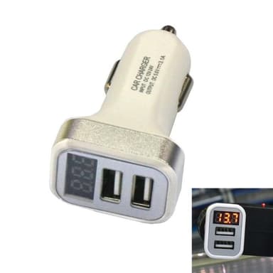 USB-billaddare med 2 USB-portar och display USB-billaddare med 2 USB-portar 3,1A och display som kan visa laddnings spänning och ström Input: DC12-24V Output: DC5V 3.1A Storlek : 6.5x3.5x2.5cm Vikt : 20 gram: FärgLäs mer om produkten