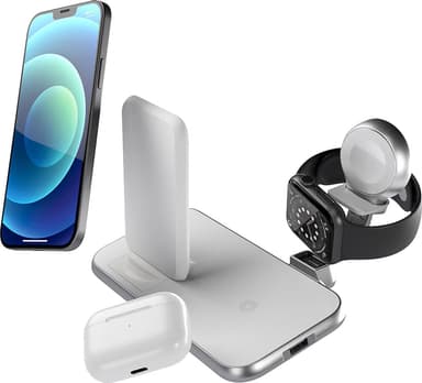 Ladda dina Apple-enheter snabbare och mer effektivt med ZENS 4-i-1 trådlös laddningsplatta. Ladda en iPhone, AirPods, Apple Watch och en fjärde enhet samtidigt för att spara tid.Läs mer om produkten