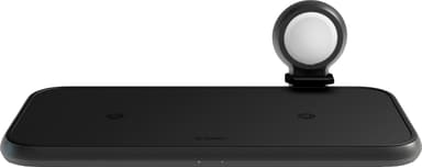 Zens 4-i-1 trådlös laddare är ett bekvämt tillbehör som laddar alla dina enheter samtidigt. Den ger dig två trådlösa laddare, en hållare för Apple Watch där du kan integrera Apple Watch MFi-laddningskabel och en extra USB-A-kontakt på sidan.Läs mer om produkten