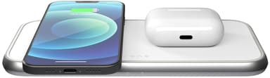 Ladda alla dina enheter enkelt tack vare Zens Aluminum Dual trådlös laddare. Den stöder dubbel, simultan trådlös laddning och en USB-A-port för trådbundna enheter.Läs mer om produkten