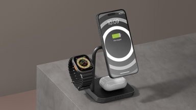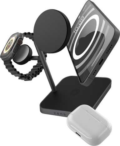 Tack vare Zens Office Pro 3 trådlös laddare kan du enkelt ladda alla dina Apple-enheter på en gång. Laddaren erbjuder upp till 15W laddningshastigheter, Apple Watch och hörlursdynor samt MagSafe och Qi2-kompatibilitet.Läs mer om produkten
