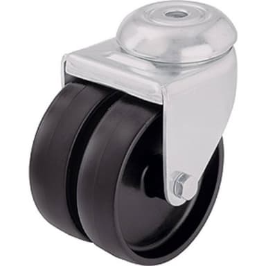Blickle 106724 Apparat- dubbelt-länkhjul, Ø 50 mm med bulthål Utförande Dubbelhjul med bulthålHölje av pressad stålplåt med dubbelt kullagrad vridkrans · Hjulaxel skruvas fast · Bulthål-Ø: 10,2 mm · Hjul i högklassig polyamid · Färg svart · MycketLäs mer om produkten