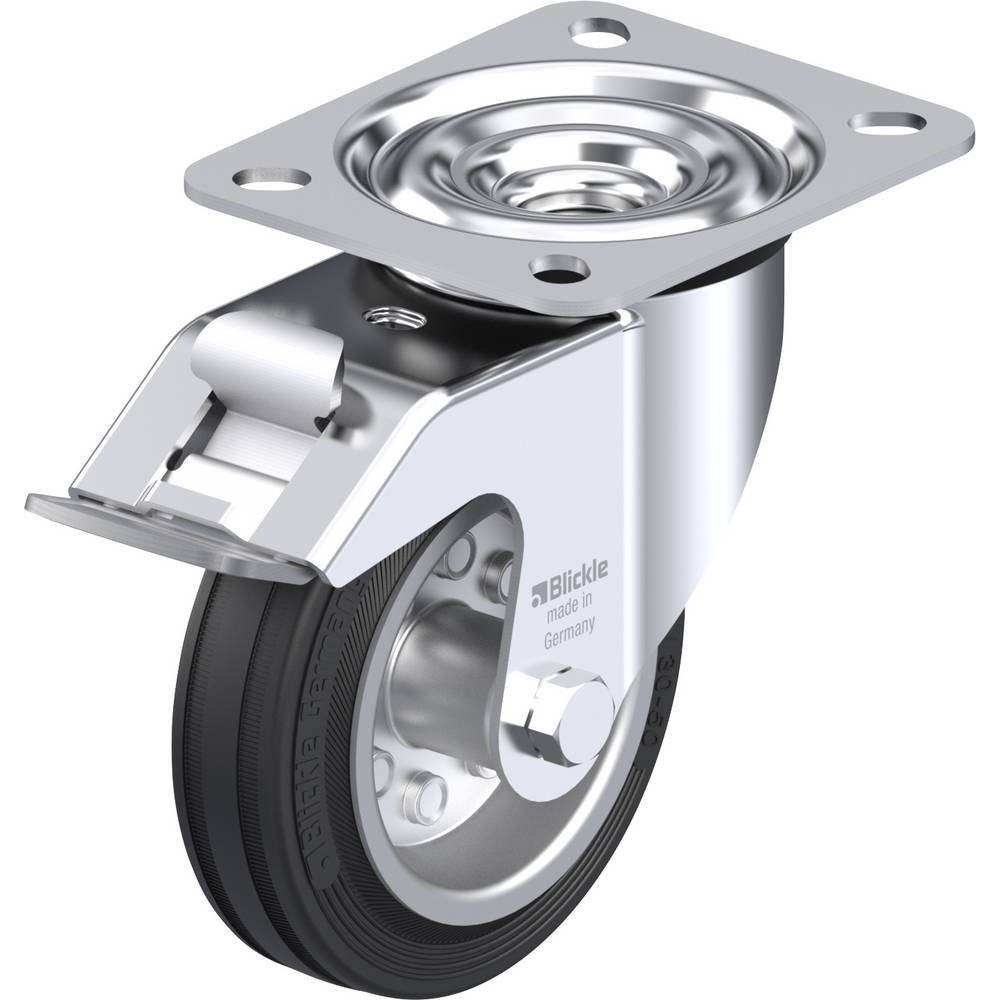Blickle 281402 Stålplåt-länkhjul, Ø 100 mm med fixering Utförande Länkhjul med fixeringHölje av stålplåt, med dubbelt kullagrad vridkrans · Fastskruvad hjulaxel, förzinkad, kromaterad · Hjul med standard gummidäck · Fälgar i pressad stålplåt ·Läs mer om produkten