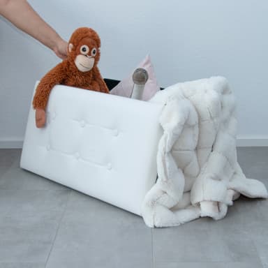 FUNKTION: Denna vackra förvaringsbänk ser inte bara till att innehållet alltid förvaras säkert och snyggt, utan kan också användas som en extra sittplats, vilket gör den till en riktig multifunktionell produkt. Tack vare det matchande locket är dina tillhörigheter dessutom skyddade från damm och smuts. Passar perfekt för förvaring av t.ex. böcker. kläder. Skor. CD-skivor. Tidskrifter. Barnleksaker och mycket mer.