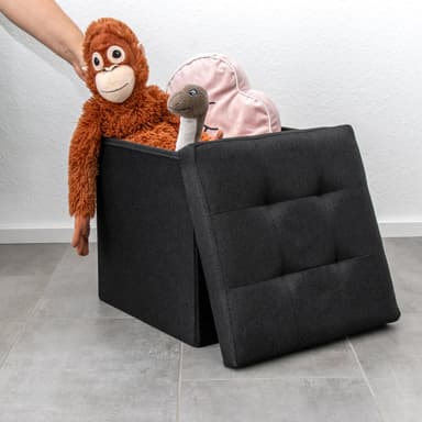 KVALITET: Trots det mycket lätta och flexibla materialet har lådan en hög stabilitet och är robust och motståndskraftig på samma gång. Det högkvalitativa materialet (kartong, MDF-träfiberskivor och linnetyg) är dessutom mycket slitstarkt. Detta gör boxen till en hållbar, platsbesparande och smakfull möbel som passar alla stilar!
