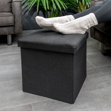 Förvaringslåda för sittpall tillverkad av tyg i trendiga färger.