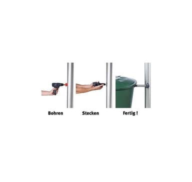 Pipen kan vridas 360° - en behållare kan placeras till vänster eller höger om stupröret