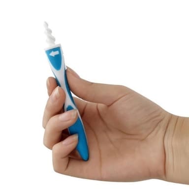 Detta är en innovativ öronvaxborttagare som avlägsnar vax från dina öron med hjälp av en mjuk spiralformad engångspets. De spiralformade spetsarna är utformade för att snurras in i örat och på så vis fånga upp vaxet i örat utan att trycka in det längre in. Denna produkt är både smidig och säker, det enda du behöver göra är att vrida i pilens riktning och långsamt föra ut öronvaxrensaren igen.