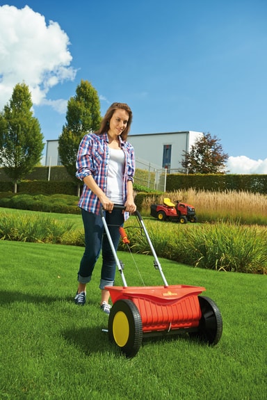 Droppspridaren sprider ut gödsel i en perfekt rak rad på gräsmattan. Det är rekommenderat att använda denna typ av spridare om du har ett gödsel som kan förgifta växter tätt intill gräsmattanLäs mer om produkten
