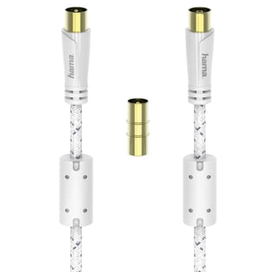Antennkabel från Hama för optimal ljud- och bildsignalöverföring. 120 dB vit kabel med 24 K guldpläterade kontakter som reducerar elektromagnetisk störning. Kabeln har en avtagbar ferritkärna och är tillräcklig flexibel att böjas utan att brytas.Läs mer om produkten
