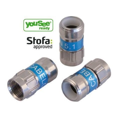 F-Self-Install-kontakt 5,1 blå. För lätta, enkla och precisa installationer. Denna kontakt har utvecklats för att ersätta twist-on-kontakter av låg kvalitet, som ofta används för hushållsinstallationer.Läs mer om produkten