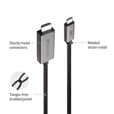 Cable Matters USB-C till HDMI kabel för att kunna ansluta din PC, Mac, surfplatta, smartphone och andra enhetr till monitor, TV och projektorer. Stöd för DisplayPort Alt Mode 1.4, notera att USB-C porten på din enhet måste stöda DisplayPort Alt Mode 1.4 för att kabeln ska fungera korrekt.Specifikationer: