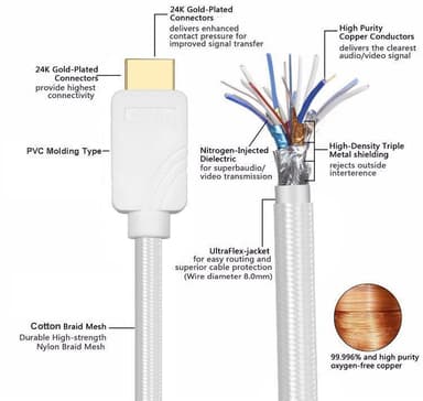 NÖRDIC CERTIFIED CABLES 3m Ultra High Speed  HDMI 2.1 8K 60Hz 4K 120Hz 48Gbps Dynamic HDR eARC Game Mode VRR Dolby ATMOS nylonflätad guldpläterad