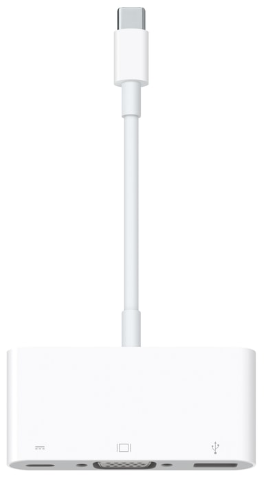 Flerports-adapter som ansluter en VGA-skärm eller projektor till din MacBook 12". Du kan också ladda din MacBook i en USB-enhet via USB-C port.Läs mer om produkten