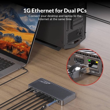 Denna allt-i-ett AV Access iDock B10 KVM-dockningsstation låter dig smidigt växla mellan en laptop och en stationär dator med bara ett knapptryck, samtidigt som du utnyttjar dual-monitor setup, snabbladdning och omfattande anslutningsmöjligheter. Perfekt för både produktivt arbete och gaming.