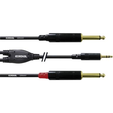 Cordial Audio Adapterkabel [1x Teleplugg 3.5 mm - 2x Teleplugg 6.35 mm] 6.00 m SvartKabeltyp intro cable 2 · kabelbeläggning: WPP · Kontaktmärke: Rean · ledningstvärsnitt: 2 x 0,22 mm2 · längd:0,9 m, 1,5 m, 3 m, 6 m.Läs mer om produkten