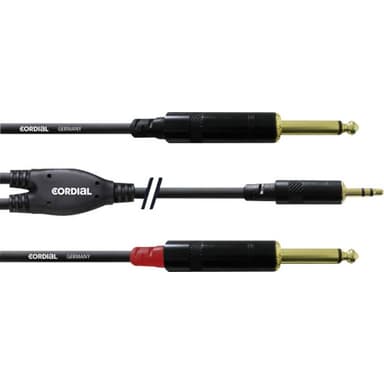 Cordial Cordial Audio Adapterkabel [1x Teleplugg 3.5 mm - 2x Teleplugg 6.35 mm] 0.90 m SvartKabeltyp: intro cable 2 · Kabelbeläggning WPP · Kontaktmärke: REAN · Kabeltvärsnitt: 2 x 0,22 mm2 · Längd: 0,9 m, 1,5 m, 3 m, 6 m.Läs mer om produkten