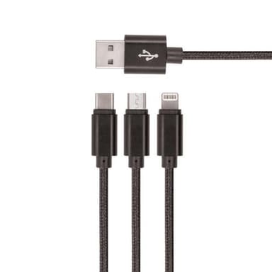 Setty 3i1 USB-kabel till microUSB/USB-C/Lightning, 1 m, Svart