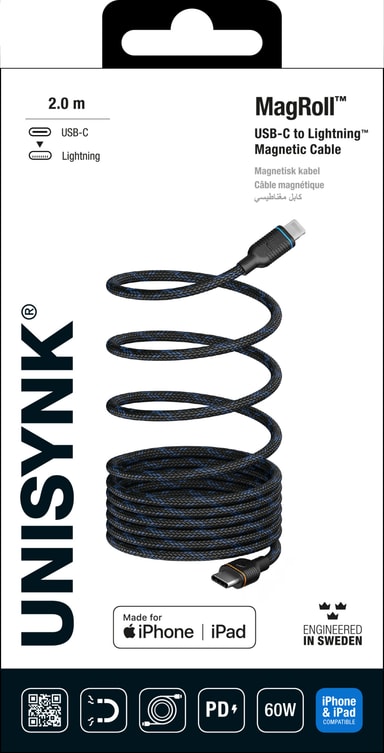 Unisynk MagRoll Magnetic 60W USB-C- till Lightning-adapter (2m)