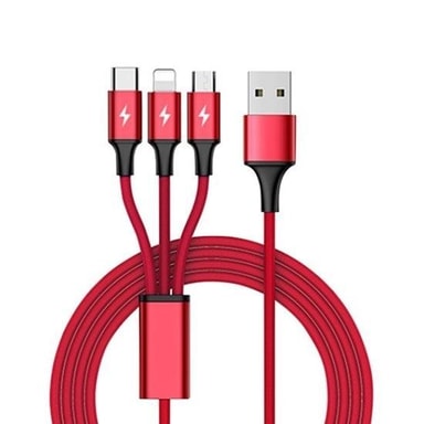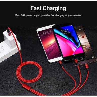 UNITEK C4049RD 3 i 1 USB A till 1xUSB C 1 xLightning och 1xMicro USB kabel för synkning och snabb laddning av upp till tre enheter samtidigt max 2,4A 1,2mLäs mer om produkten