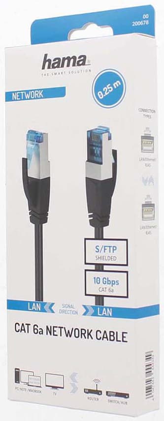 Anslut din bärbara dator, PC, gaming-konsol eller andra trådbundna nätverksenheter till din router, switch eller nätverksadapter med denna Hama CAT6a S/FTP nätverkskabel. Kabeln är 0.25m lång och stöder Ethernet-dataöverföringar på upp till 10 Gbit/s.Läs mer om produkten