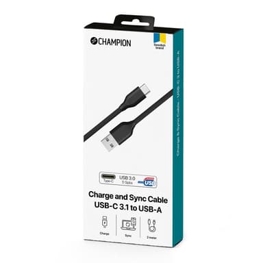 USB-kabel med USB-C, för laddning och synkronisering av surfplattor, smartphones eller andra enheter som använder sig av USB Type-C/USB-C.