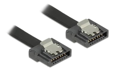 De korta kontakterna ger mer flexibilitet i trånga utrymmen och är praktiskt att använda, och metallklämmorna säkerställer att kablarna tillförlitligt klickar på plats. Kablarna stöder hastigheter på upp till 6 Gb/s och är bakåtkompatibla med tidigare SATA-versioner.