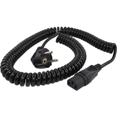 • Spiralledning H05VV-F 3G1,00 i svart med formsprutad jordad vinkelkontakt och formsprutad C13-dosa