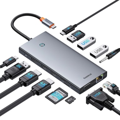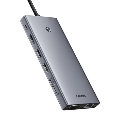 Baseus 13in1 HUB USB-C Till VGA, 2xHDMI, DP, RJ45, SD,TF, Aux, USB-C 3.1, USB-A 3.1, USB-A 2.0 PortalJoy Series - Grå