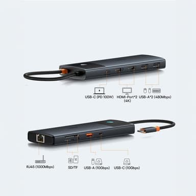 Utöka dina arbetsmöjligheter med funktionen för dubbla bildskärmar. Baseus Metal Gleam Series låter dig ansluta två bildskärmar samtidigt, vilket ökar arbetseffektiviteten och komforten. Den perfekta lösningen för yrkesverksamma, designers eller spelare som kräver mer arbetsyta.