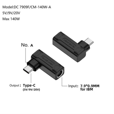 DC 7,9x0,9 hona till typ-C hane 140W laddningsadapter för laptop Miniomvandlare