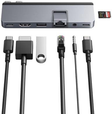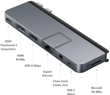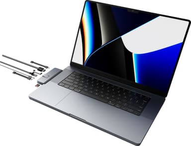 Anslut en extern bildskärm och överför filer snabbt med en Hyper HyperDrive Duo Pro 7-i-2 USB-hubb som ger dig massor med extra portar, som en USB4-port med upp till 40Gbps överföringshastigheter, USB-C- och USB-A-portar och Gigabit Ethernet.Läs mer om produkten