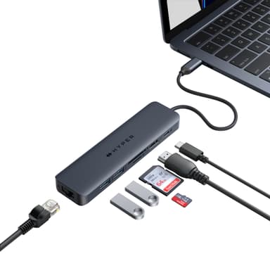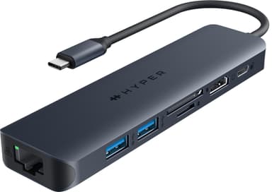 Med Hyper HyperDrive Next 7 Port USB-C-hubben kan du utöka din bärbara dators anslutningsmöjligheter. Med en HDMI-port med 4K-videoutgång, en USB-C-port med 100W strömförsörjning, USB-A-portar samt en Ethernet-port.Läs mer om produkten