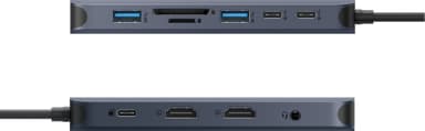 Tack vare Hyper HyperDrive Next 11 Port USB-C hubb kan du utöka din bärbara dators anslutningsmöjligheter. Med två HDMI-portar med stöd för 4K60Hz, en USB-C-port med 140W Power Delivery, två extra USB-C-portar, två USB-A-portar samt en Ethernet-port.Läs mer om produkten