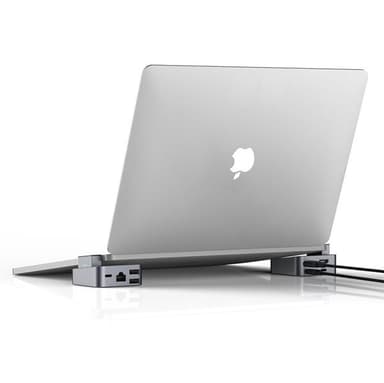 HUBEN på ena sidan och stativet på den andra. En enhet designad speciellt för Apple MacBook Pro för att förbättra luftcirkulationen och som ett resultat förhindra att datorn överhettas.