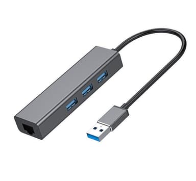 NÖRDIC USB3.1 till Ethernet Giga nätverksadapter med 3xUSB3.1 hubb, 17cm, Space Grey Aluminium
