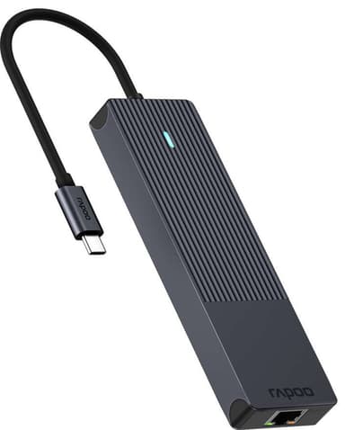RAPOOUCM-2002 6-i-1 USB-C Multiport Adapter-hub kommer i en elegant aluminiumdesign som både ser bra ut och ger hållbarhet.Läs mer om produkten