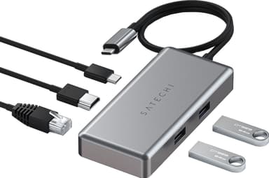 Satechi Multiport USB-C Chromebook-hubb låter dig enkelt ansluta alla dina tillbehör till din Chromebook. Du får upp till 96 W laddning via USB4-porten, en HDMI-port med 4K60Hz-stöd, två USB-A-portar och en RJ-45-port för trådbunden internetanslutning.Läs mer om produkten