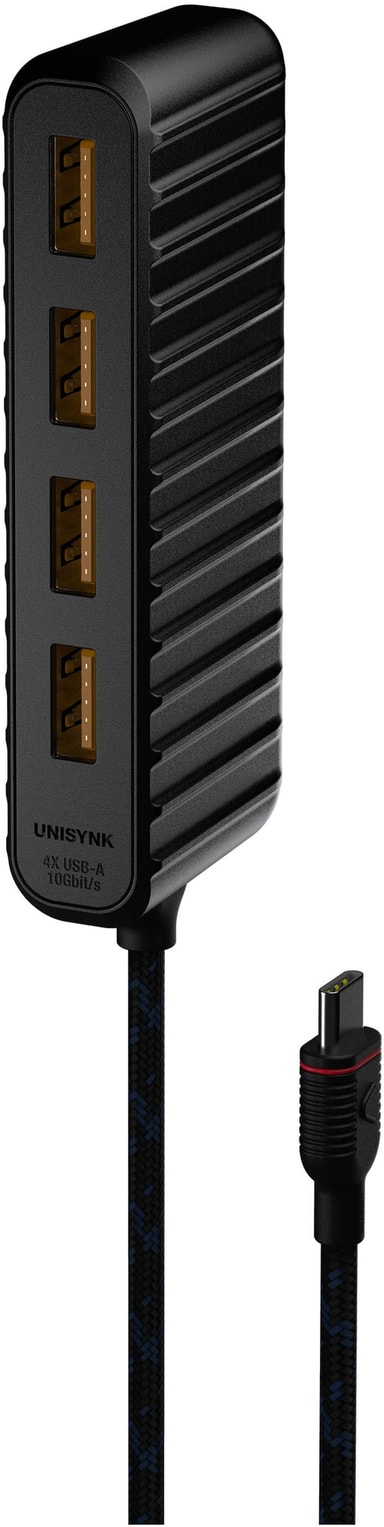 Unisynk USB-C till 4x USB-A minihubb låter dig utöka anslutningsmöjligheterna på din enhet genom att lägga till fyra USB-A 3.1-portar med upp till 10 Gbit/s överföringshastighet. Håll din enhet slimmad samtidigt som du får utökade anslutningsmöjligheter.Läs mer om produkten