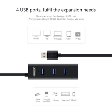 UNITEK Y-3089 Superspeed USB A 5Gbps hubb med 4 portarLäs mer om produkten
